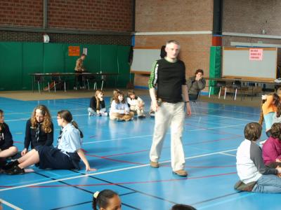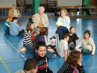 Vous pouvez voir le groupe de scouts en 1er plan et au fond 2éme à gauche c'est Charline avec son groupe et d'autres animatrices dans la salle avec les jeunes.