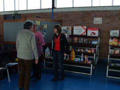 A nouveau, voici le stand : "magasin" où l'on peut voir 3 animatrices en pleine discussion.
