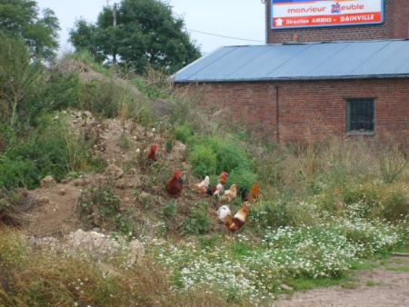 " Mes seigneurs les coqs entourés de leur cour à l'endroit où nous avons terminé notre randonnée en ce vendredi 22 aoùt 2008 "