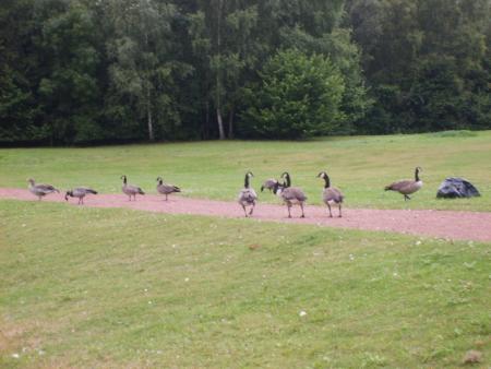 " Voici quelques oies qui profitent de la nature dans les allées du marais "