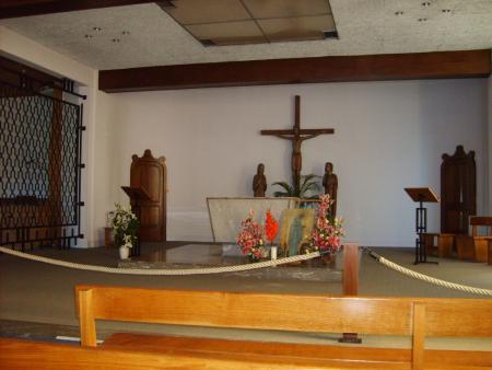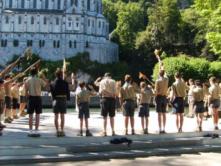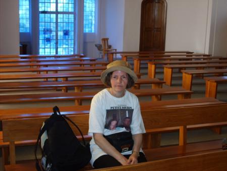 " Mon chéri qui est assis sur un banc du couvent du Carmel de Lourdes" .