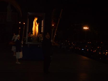 " Voici à nouveau la procession aux flambeaux avec la Vierge Couronnée éclairée " .