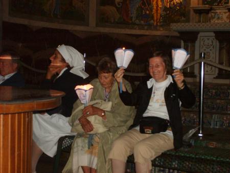 " Eh oui , là c'est moi assise à côté d'une personne agée qui vient d'Aix-en-Provence où nous avons fais ensemble la procession aux flambeaux " .