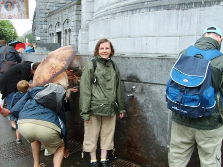 " Voici mon chéri qui pose pour la photo devant les gros cierges, il est heureux de revenir à Lourdes : 36 ans aprés ".